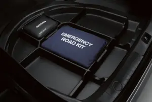 - Description: Sub-floor organizer fits directly beneath the trunk mat to give you extra usable space in the area above the spare tire. The organizer also comes with an emergency road kit and a first-aid kit, each stored snugly in their own custom-fit compartments.